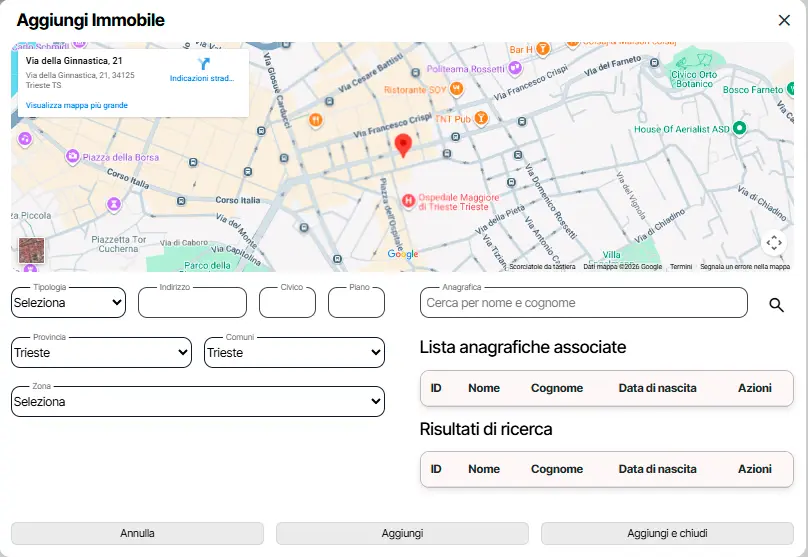 Una volta selezionata, l’anagrafica viene accorpata all’immobile in fase di aggiunta