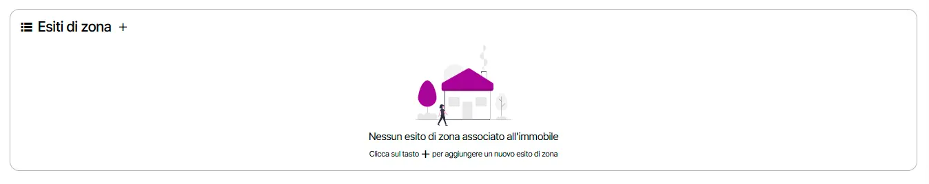 La schermata Esiti di Zona consente di visualizzare tutte le azioni e i passaggi fisici effettuati direttamente nell'area geografica dell’immobile.