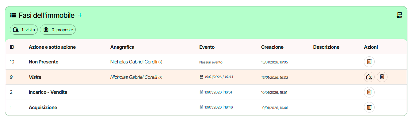 - Visita: visibile nella scheda dell’immobile e nell’anagrafica dell’acquirente/conduttore
