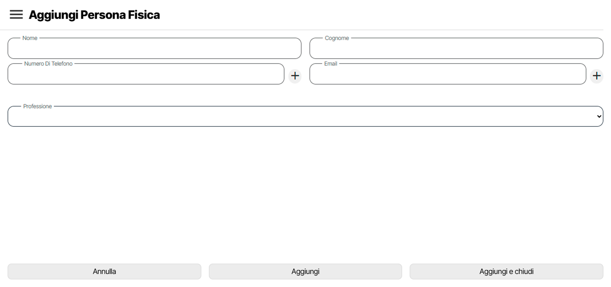 Nella pagina di aggiunta persona, l’utente può creare un nuovo record per: