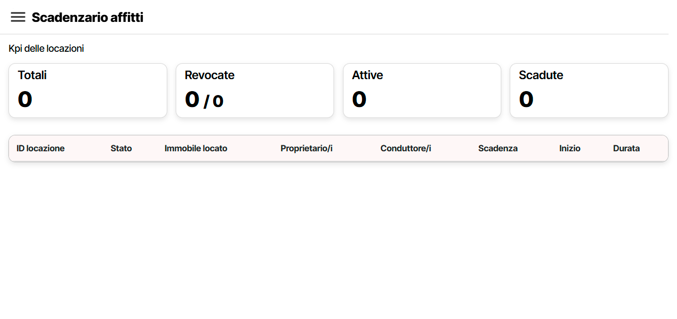 La sezione Scadenzario Affitti è dedicata alla gestione completa dei contratti di locazione attivi.